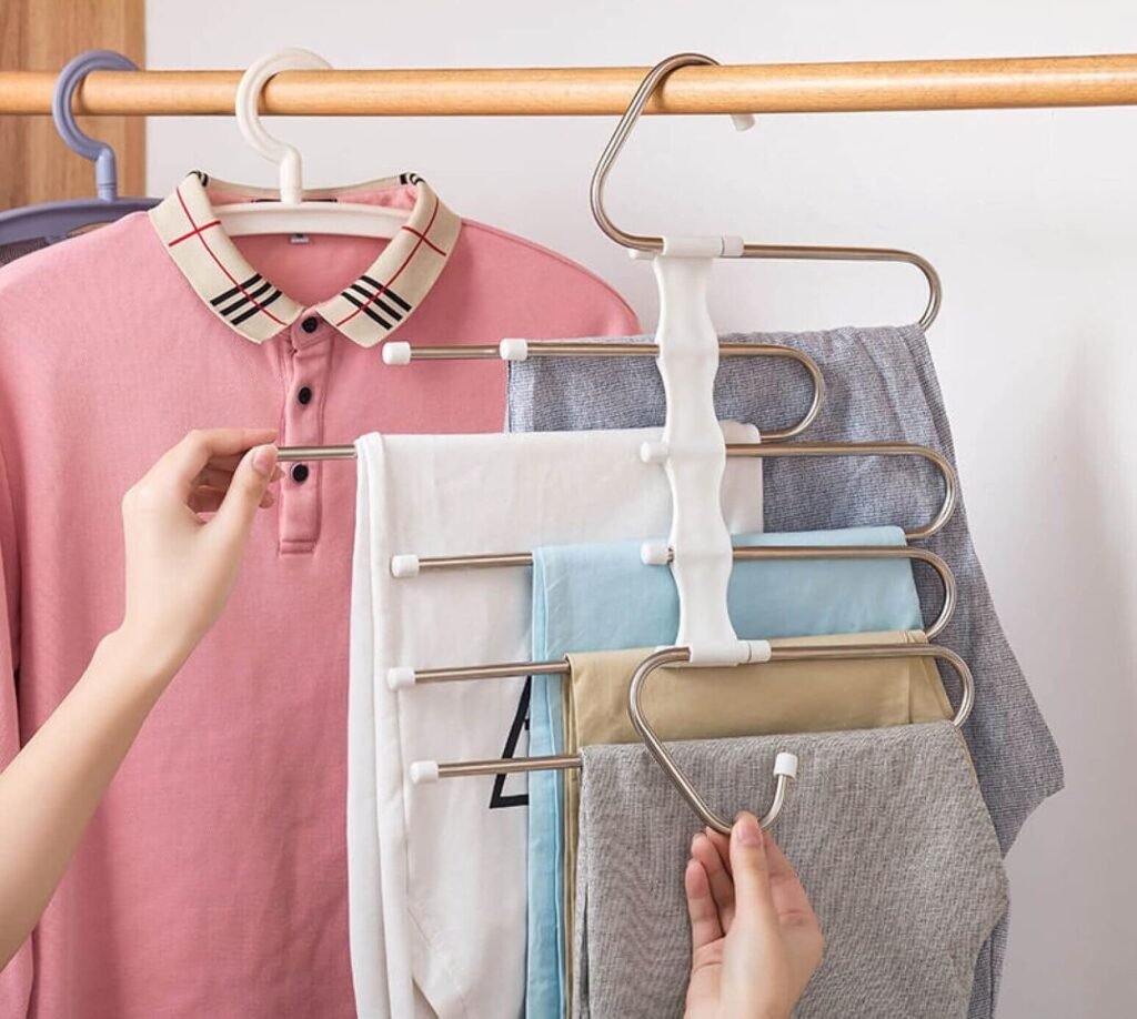 Multi-level hangers are one of the most effective ways to instantly increase closet space. This space-saving design allows multiple garments to hang vertically, reducing overcrowding while keeping clothes accessible. It’s especially helpful in small apartment closets with limited rod space.