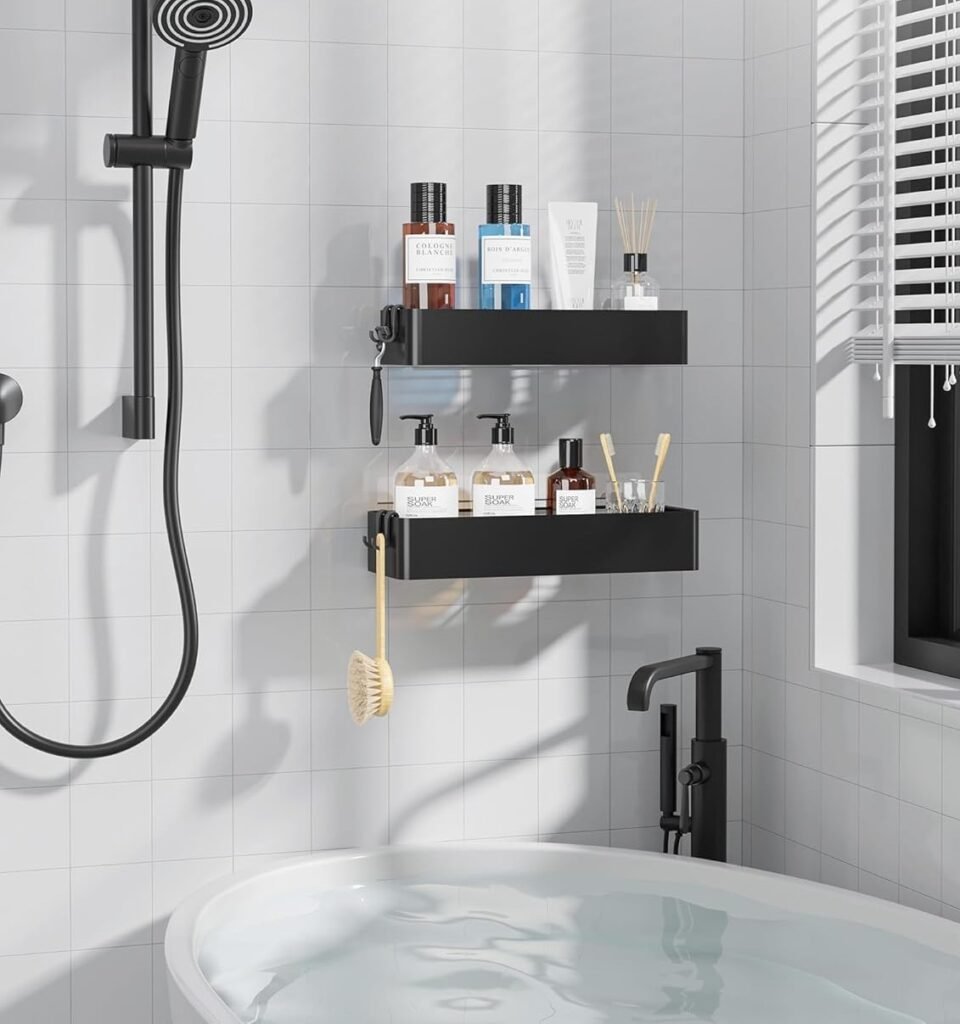 Small bathroomsKitsure Adhesive Shower CaddyNo drilling, clean look, strong adhesive when installed correctlyCheck price on Amazon