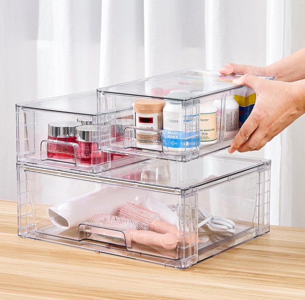 Cabinets & under-sink areasVtopmart Stackable Acrylic Storage DrawersModular, sturdy, multiple sizes, works across kitchen, bathroom, and laundryCheck price on Amazon