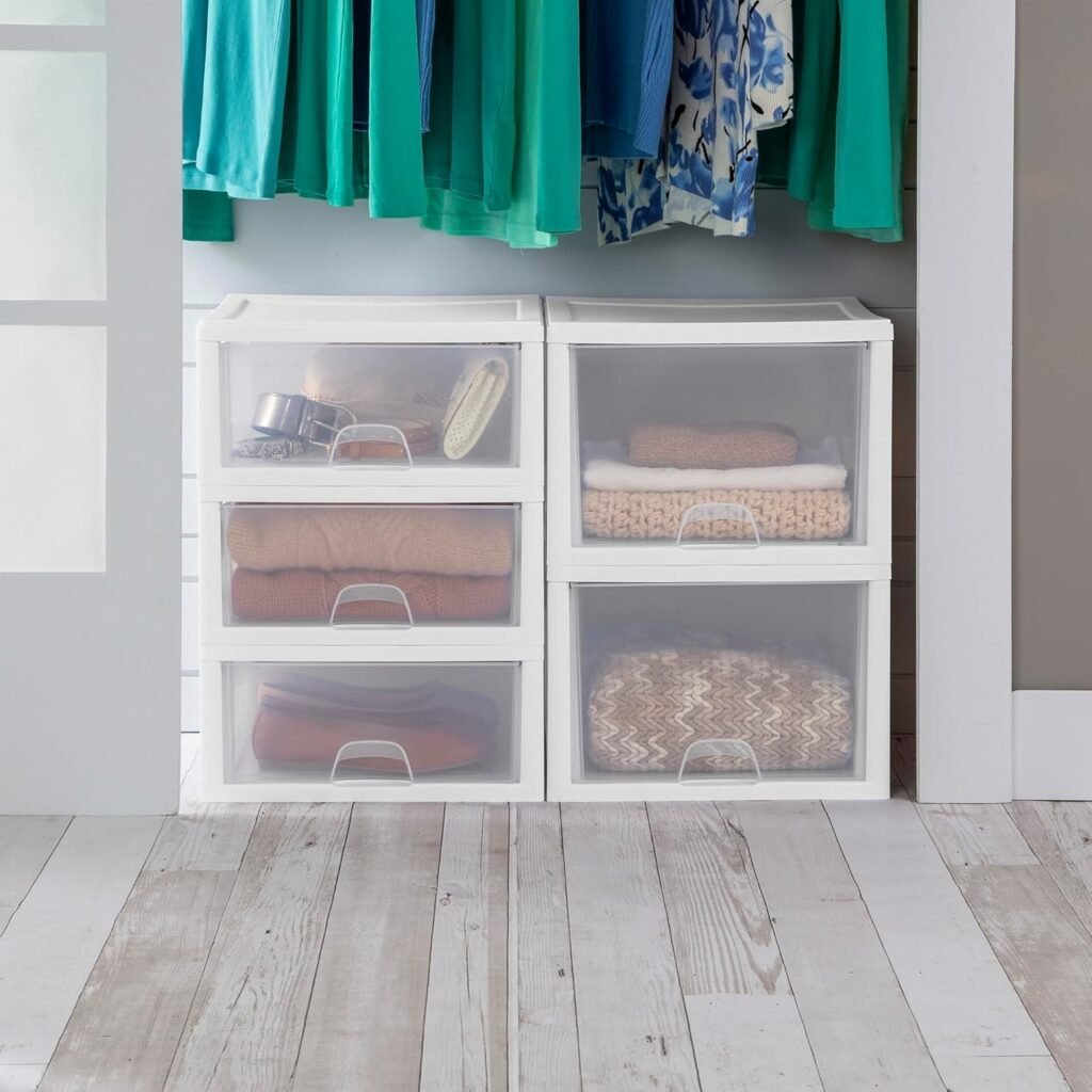 Closet drawersSterilite Stackable Drawer Closet OrganizersCreates drawer systems inside closets with full visibilityCheck price on Amazon