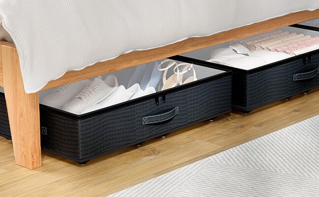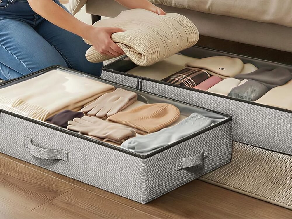 Low-profile under-bed storageUnder-Bed Storage Containers – Low ProfileFits shallow spaces, great for off-season clothes and shoesCheck price on Amazon
